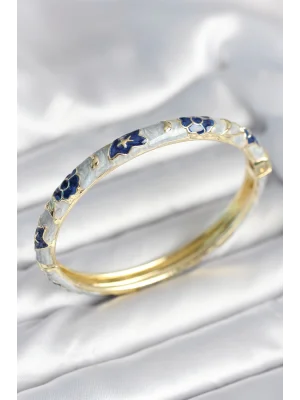 Mineli Pirinç Yeşil Çiçek Motifli Kadın Kelepçe
