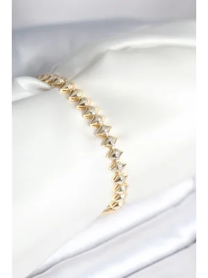Pirinç Gold Renk Zirkon Taşlı Baklava Model Kadın Bileklik