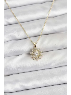 Pirinç Gold Renk Çiçek Model Kadın Kolye