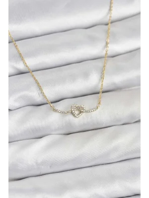 Pirinç Gold Renk Düğüm Kalp Model Kadın Kolye
