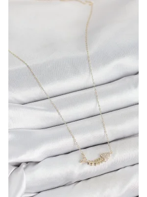 Pirinç Zirkon Taşlı Balık Kılçığı Model Gold Renk Kadın Kolye