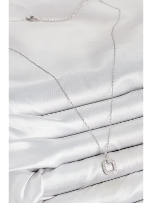 Pirinç Zirkon Taşlı Kare Model Gümüş Renk Kadın Kolye