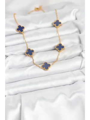 316L Çelik Zincir Gold Renk Lacivert Yonca Kadın Kolye