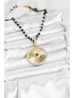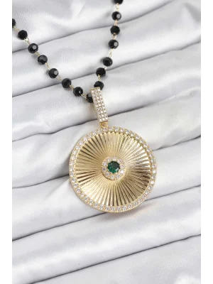 316L Çelik Zirkon Taşlı Güneş Ve Ay Enerji Model Gold Renk Kadın Kolye
