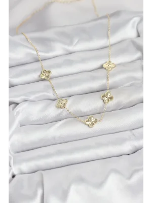 316L Çelik Gold Renk Beyaz Sedefli Yonca Kolye