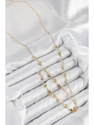 316L Çelik Gold Renk 2'li İtalyan Zincir Asansör Model Sallantı Detay Kadın Kolye