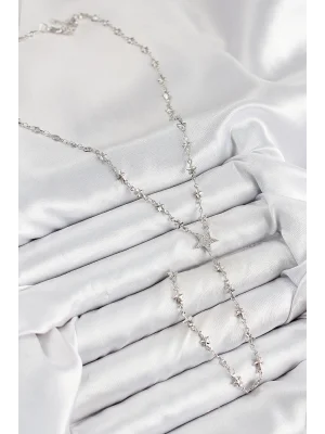 Pirinç Zirkon Taşlı Ezme Zincirli Kutup Yıldızı Model Gümüş Renk Y Kolye