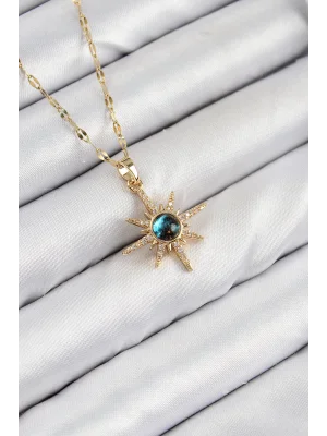 Pirinç Zirkon Taşlı Kutup Yıldızı Model Gold Renk Y Kolye