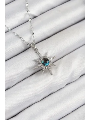 316L Çelik Zirkon Taşlı Kutup Yıldızı Model Gümüş Renk Kadın Kolye