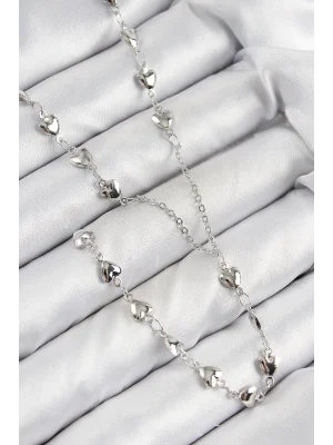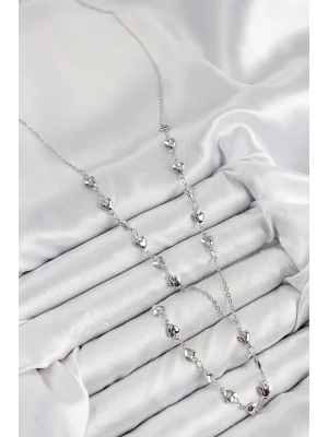 Pirinç Zirkon Taşlı Kalp Model Gümüş Renk Y Kolye