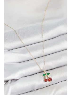 Pirinç Zirkon Taşlı Kiraz Model Gold Renk Kadın Kolye