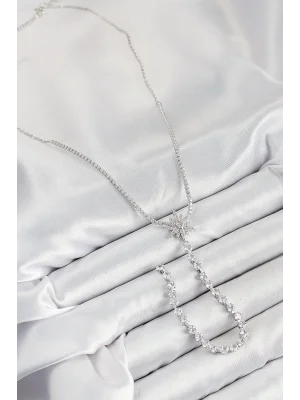 Pirinç Zirkon Taşlı Kutup Yıldızı Model Gümüş Renk Y Kolye