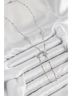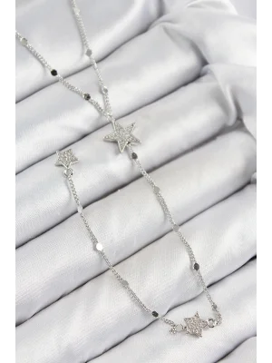 Pirinç Zirkon Taşlı Yıldız Ve Ay Model Gümüş Renk Kadın Kolye