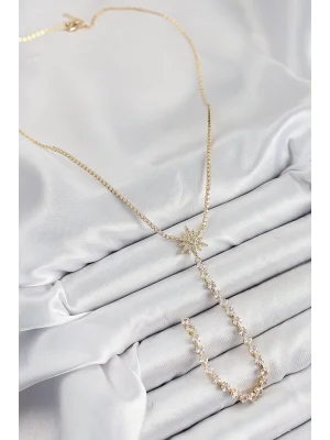 Pirinç Zirkon Taşlı Yıldız Model Gold Renk Y Kolye