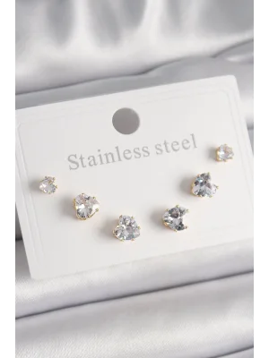 316L Çelik Gümüş Renk Zirkon Taşlı Kadın Küpe Seti