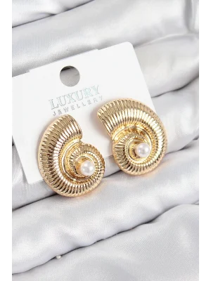 Pirinç İnci Detaylı Girdap Model Gold Renk Kadın Küpe