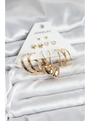 Gold Renk Yıldızlı Set 6 Çift Kadın Küpe Seti