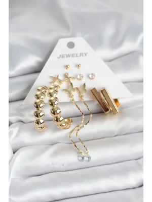 6 Çift Kadın Küpe Seti Gold Renk