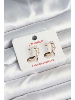 Pirinç Gold Renk Zirkon Taşlı Vintage Kadın Küpe