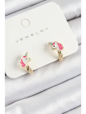 Pirinç Unıcorn Model Gold Renk Çocuk Küpe