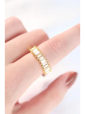 Sıralı Baget Taşlı Gold Renk Ayarlanabilir Yüzük