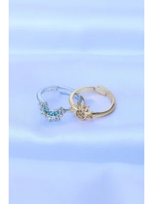 Pirinç Zirkon Taşlı 2li Ayarlanabilir Arkadaş Yüzüğü