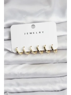 Gold Renk Pirinç Minimal Petek Detaylı Kadın Küpe Seti