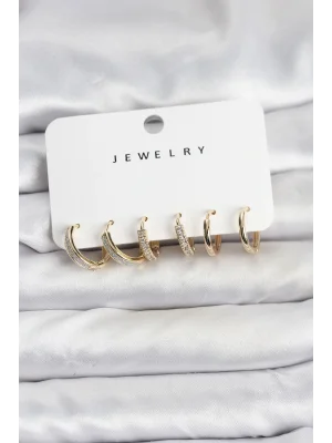 Zirkon Taşlı Gold Renk Pirinç Kadın Küpe Seti