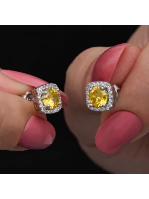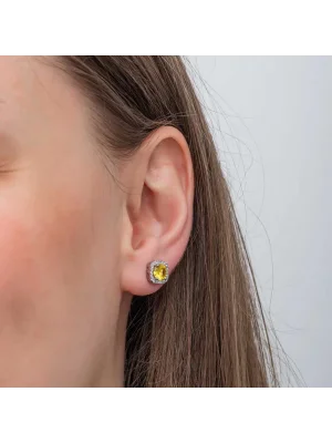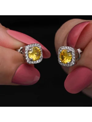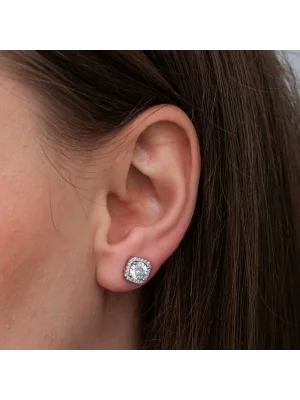 Gümüş Kare Montür Pırlanta Çivilii Modeli Küpe