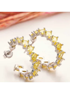 Gümüş Sarı Baget Taşlı Çivili Kadın Küpe