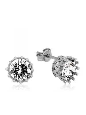 Gümüş 7 mm Beyaz Zirkon Tek Taş Kadın Küpe