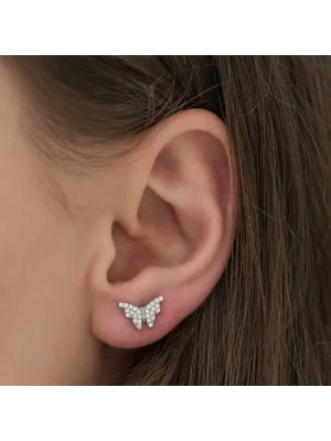 Gümüş Beyaz Kelebek Küpe