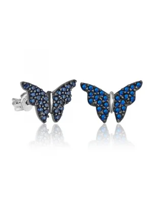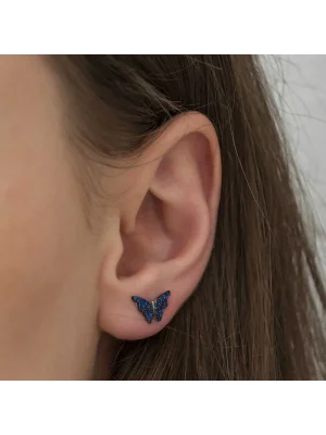 Gümüş Lacivert Kelebek Küpe