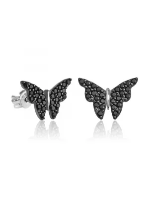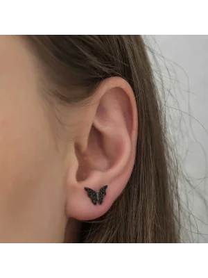 Gümüş Siyah Kelebek Küpe