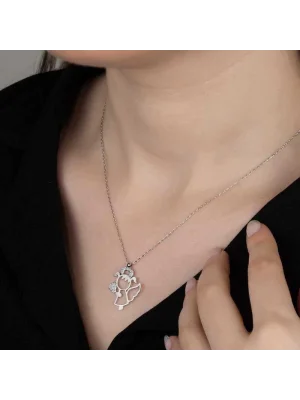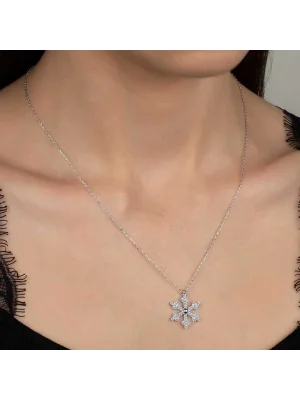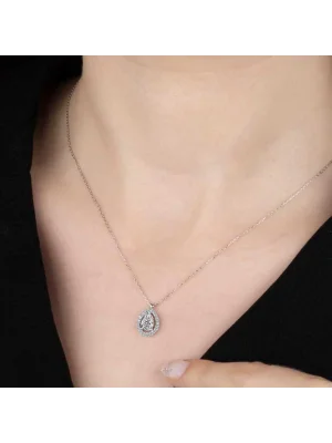 Crystal Taşlı Top Zincir Damla Gümüş Kadın Kolye