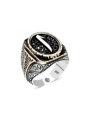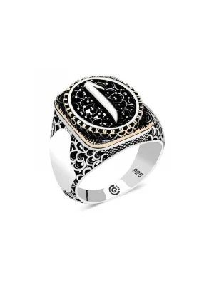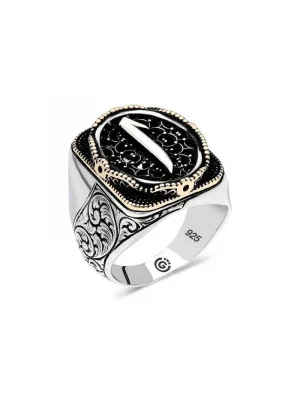 Gümüş Elif Motifli Başparmak Erkek Yüzük