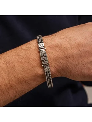 Gümüş Çizgi Desenli Bileklik Ve Yüzük Set