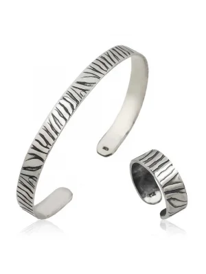 Gümüş Zebra Desenli Bileklik Ve Yüzük Set