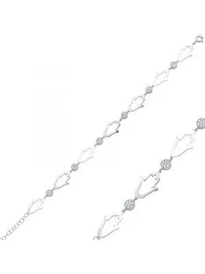 Gümüş Zirkon Taşlı Fatma Ana Eli Kadın Bileklik