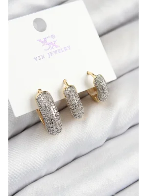 Gold Renk Halka Beyaz Kalp Model Kadın Küpe