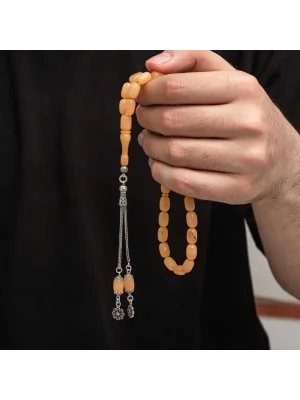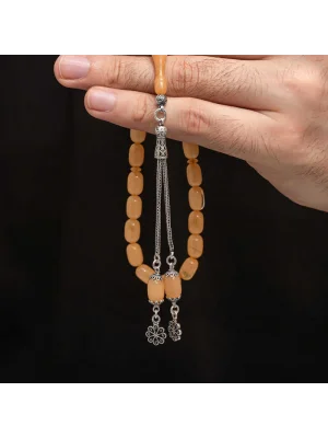 Gümüş 1000 Ayar Kazaz Püsküllü Sıkma Kehribar Tesbih
