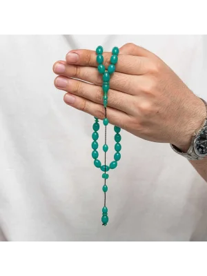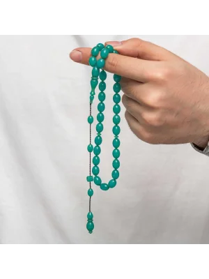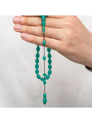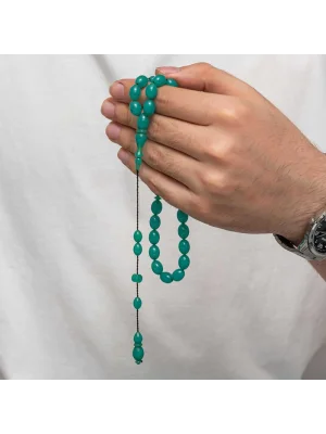 Kehribar, çam ağacı reçinesinin toprak altında uzun yıllar boyunca birikerek oluşan bir maddedir. Hemen hemen taş ile aynı sertliktedir fakat yoğunluğu düşüktür. Çam kokusu yayar. Oluşumu uzun zaman aldığından ve yapay olarak yapılamadığından değerli bir maddedir. Sıkma kehribar ise kehribar taşından farklı olarak onun özelliklerini taşıyan, görüntü itibariyle ona benzeyen fakat gerçek olmayan bir malzemedir. Ülkemizde ve dünyanın bir çok yerinde kehribar taşından çeşitli malzemeler üretilmiştir. Ülkemizde en yaygın olarak tesbih üretilmektedir. Kehribar tesbihler elde ısındıkça kehribar benzeri bir koku verir ve renk değiştirir. Bir çok rengi vardır. Hatta iki rengin birleşiminden oluşan kehribar tesbih modelleri de vardır. Genellikle gümüş püskül ile kullanılır veya sistemli olarak da kullanılabilir. Ülkemizin güzide tesbih ustaları bu malzemeyi sıklıkla işlemek suretiyle çeşitli sanat eserleri meydana getirirler. Bu tesbihler de koleksiyonerler tarafından alınıp satılmaktadır. Gümüş 1000 ayar kazaz püsküllü sıkma kehribar tesbih modeli de günlük hayatta kullanılabilecek çok şık bir tesbih çeşididir. Özel günlerin vazgeçilmez hediyesi sıkma kehribar tesbihler erkekler için doğum günü, sevgililer günü ve babalar günü gibi özel zamanlarda hediye olarak tercih edilebilir. Gümüş kazaz püsküllü sıkma kehribar tesbih modeli diğer kehribar tesbih modellerinde olduğu gibi tamamen el emeği ile imal edilmiştir.