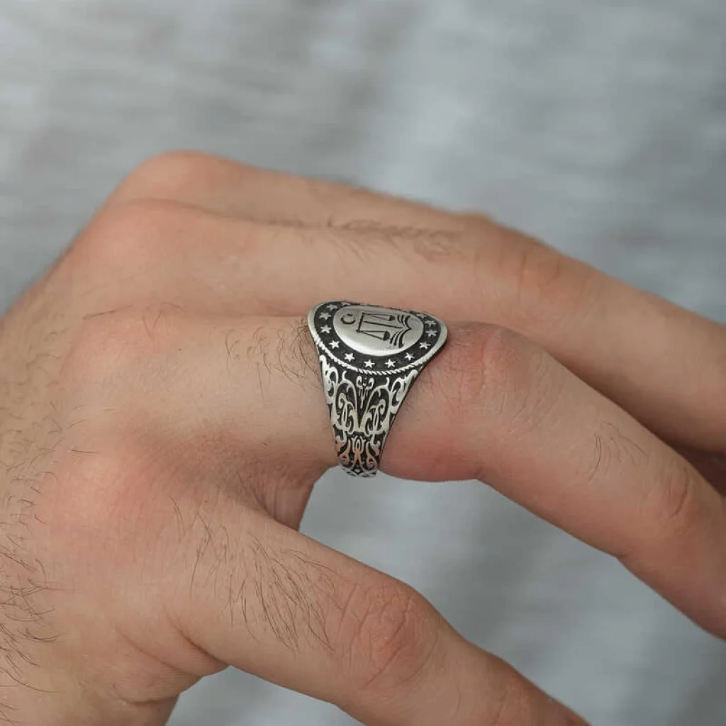 “Terazi” adaleti ve bunun dengeli bir şekilde dağıtılmasını simgeler. Adaleti, tarafsızlığı, bağımsızlığı ve eşitliği temsil eder. Bu şık yüzüğü; doğum günü hediyesi, sevgililer günü hediyesi olarak özel günlerde tercih edebilirsiniz. Adalet terazisi yüzük modeli 925 ayar gümüşten imal edilmiştir. Yüzük üzerine oksit kaplama yapılmıştır. Oksit kaplama yapılan gümüş yüzük eskitme bir görünüme sahip olur. Gümüş adalet terazisi yüzük modelinde olduğu gibi tüm gümüş yüzük modelleri tamamen el emeği ile üretilmiştir. Gümüş ve değerli taşlar nedeniyle belirtilen ortalama ürün ağırlığında ± %10 sapma olabilmektedir.