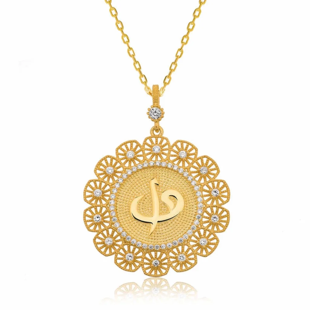 Gümüş Altın Kaplama Elif Vav Bayan Kolye
