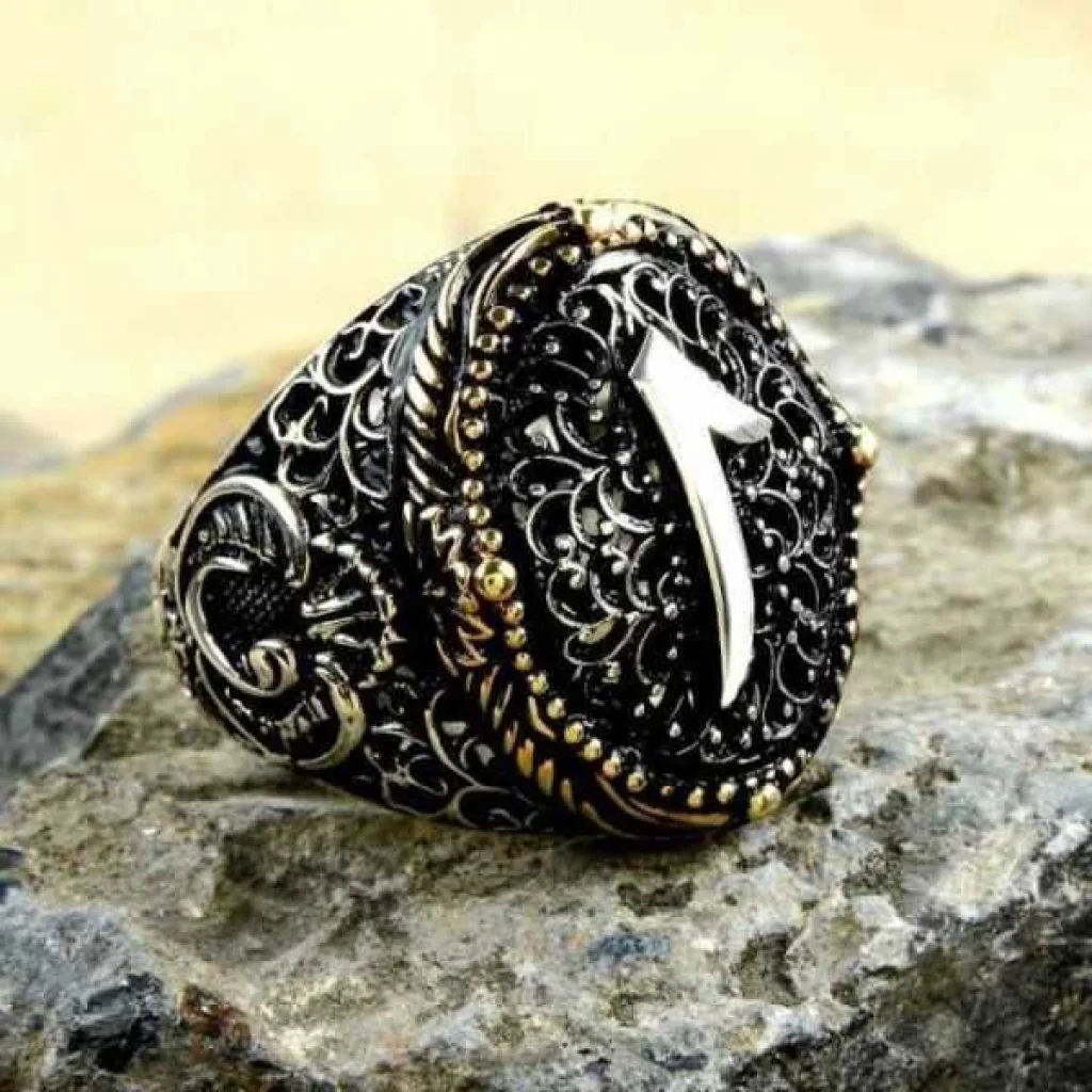 Gümüş Arapça Elif Yazılı Erkek Yüzük