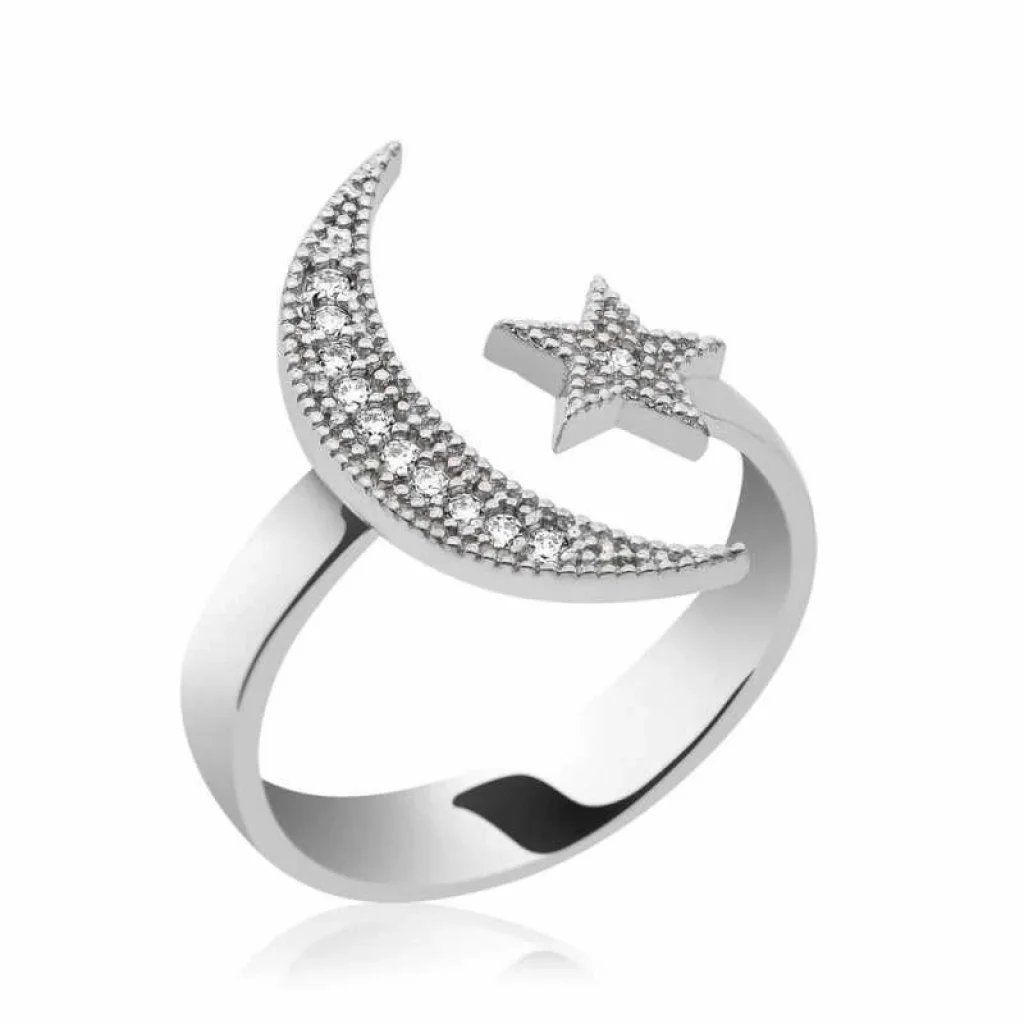 Gümüş Ay Yıldız Bayan Yüzük