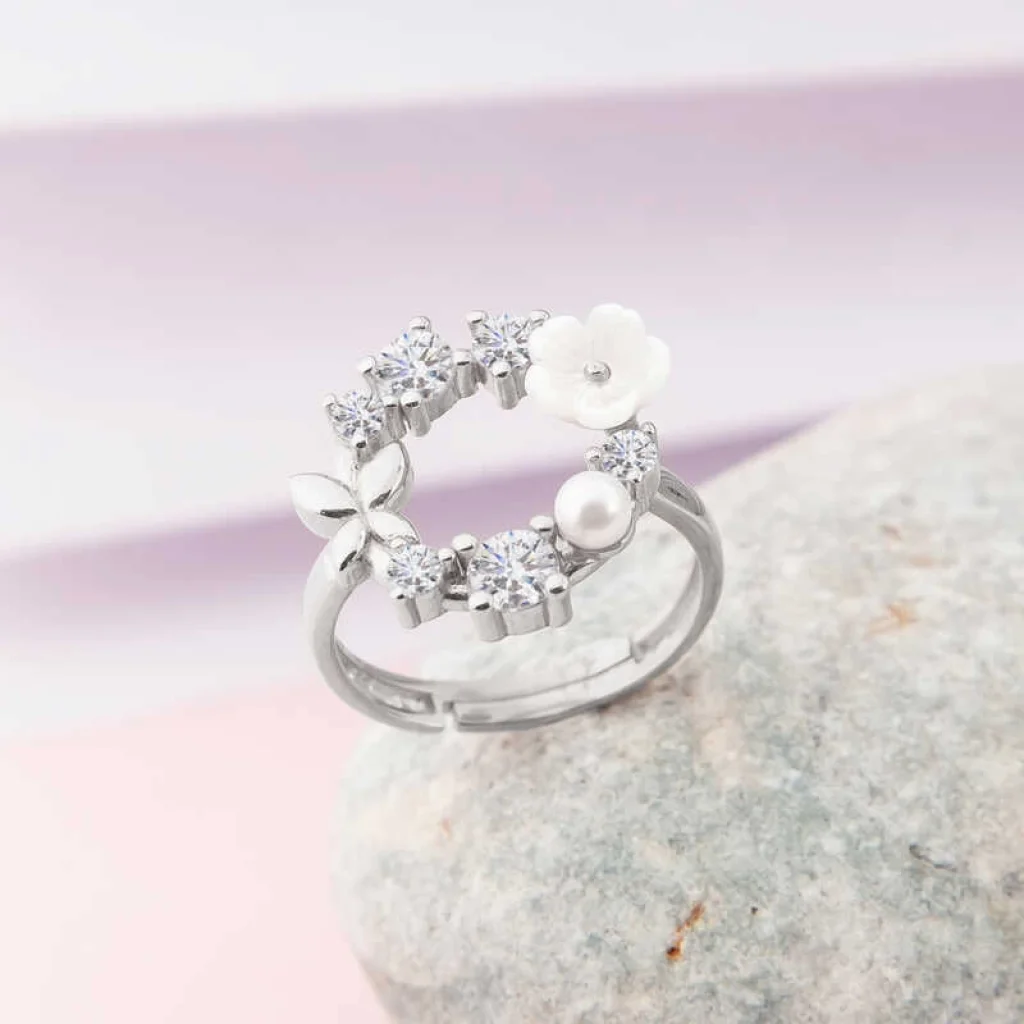 Gümüş Ayarlanabilir Manolya Çiçeği Kadın Yüzük