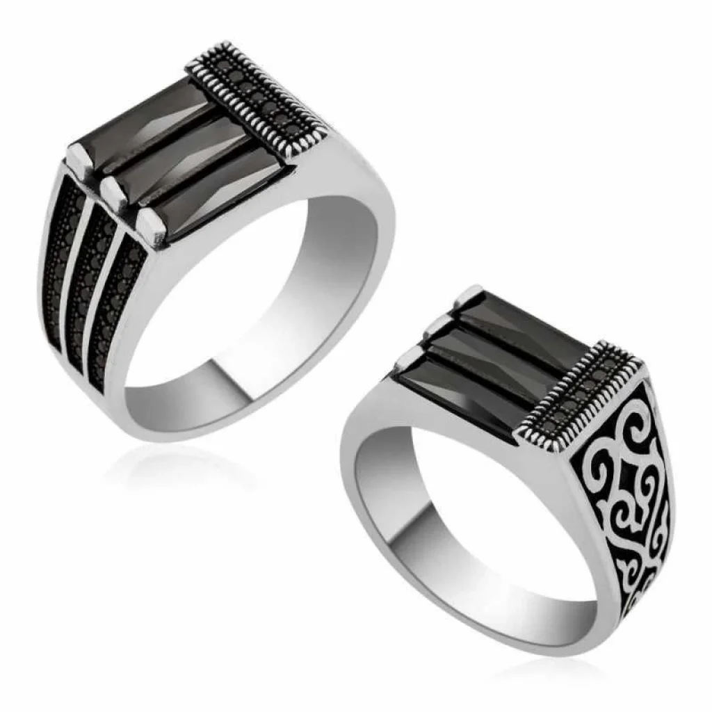Gümüş Baget Taşlı Klasik Erkek Yüzük