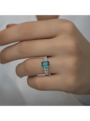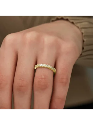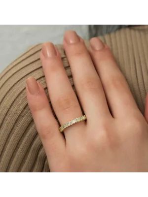 Gümüş Baget Taşlı Yarımtur Kadın Yüzük
