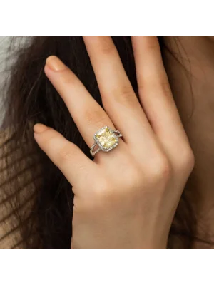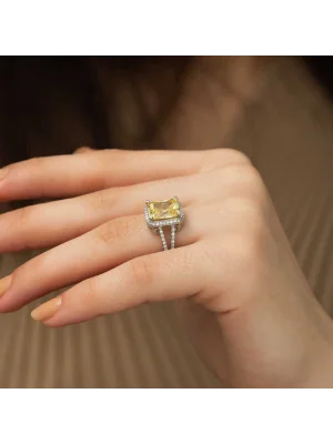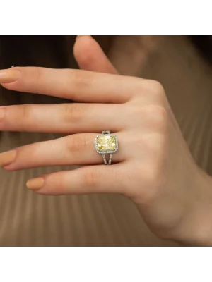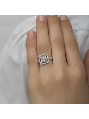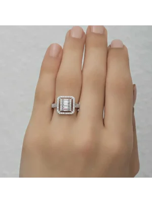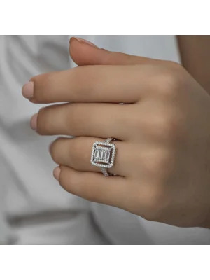 Işıl ışıl baget taşlarla süslenmiş bu şık yüzük modeli;doğum günü hediyesi,sevgililer günü hediyesi veya annelere hediye olarak özel günlerde tercih edebileceğiniz çok şık bir seçenektir. Baget taşlı kadın yüzük 925 ayar gümüşten imal edilmiştir. Gümüş üzerine rodyum kaplama yapılmıştır.Rodyum kaplama yapılan gümüş yüzükler parlaklığını uzun süre muhafaza eder, oksitlenmesi gecikir.Üzerinde bulunan taşlar baget ve zirkondur.Tüm kadın gümüş yüzüklerde olduğu gibi gümüş baget taşlı kadın yüzük modeli de el emeği ile üretilmiştir. Gümüş ve değerli taşlar nedeniyle belirtilen ortalama ürün ağırlığında ± %10 sapma olabilmektedir.